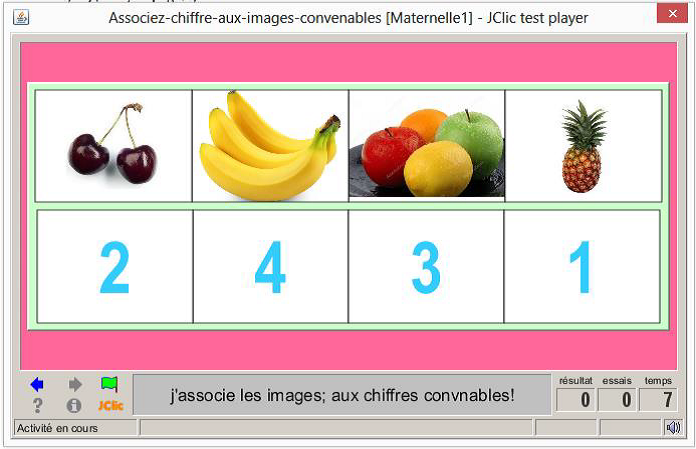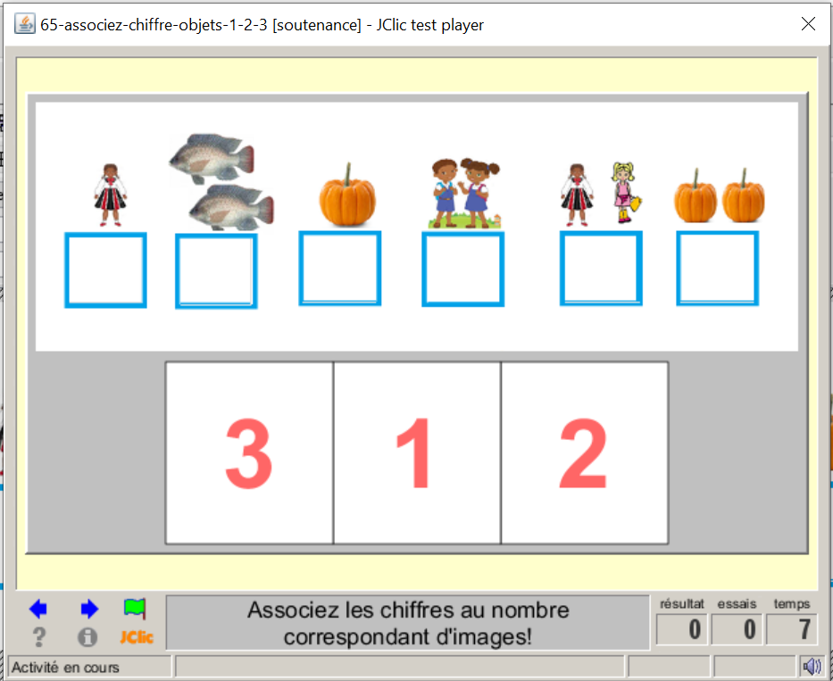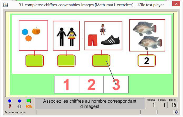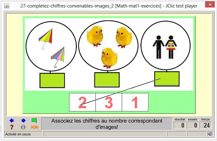 consigne textuel et sonore: Associez les images aux chiffres convenables