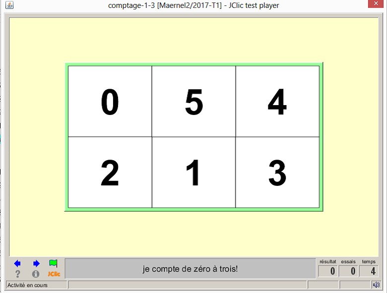 Consigne textuel et sonore : “Je fais le Comptage de 0 à 3”.