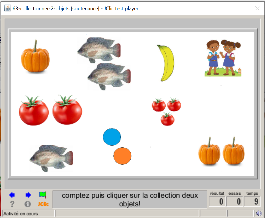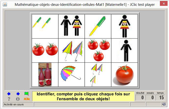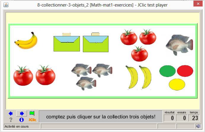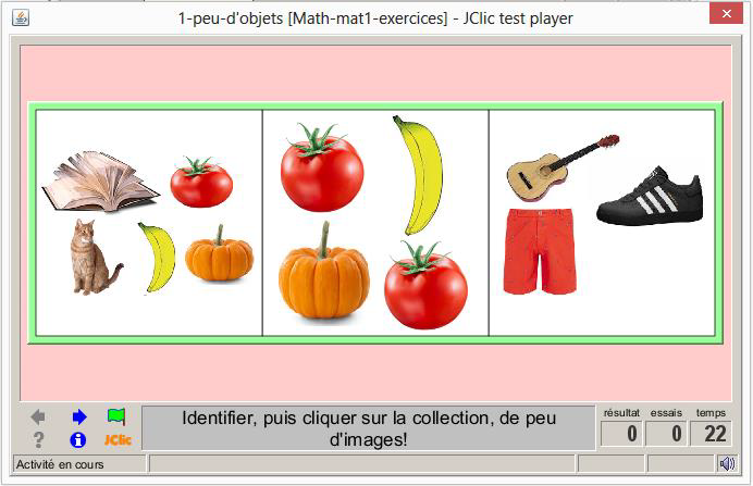 consigne textuel et sonore: Identifier puis cliquer chafois sur l'ensemble de objets
