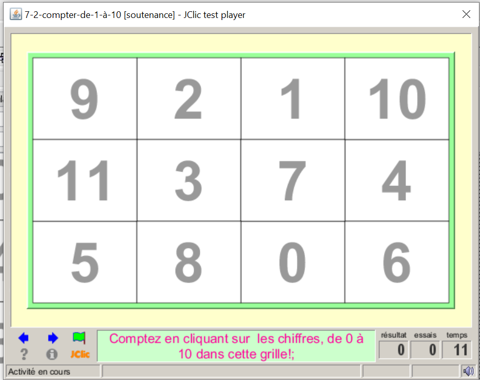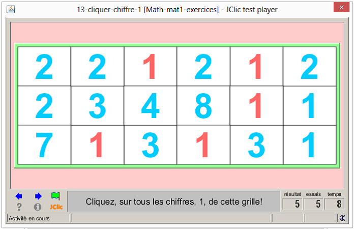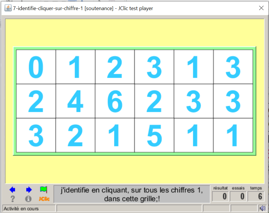 consigne textuel et sonore: cliquez sur le chiffre 1