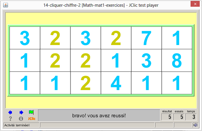 consigne textuel et sonore: cliquez sur le chiffre 3