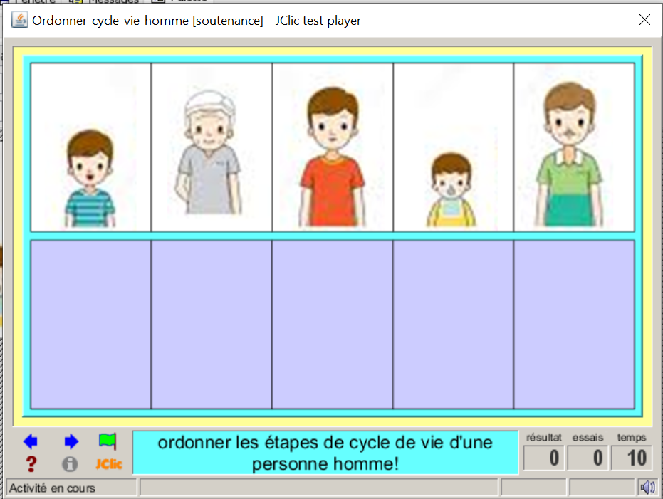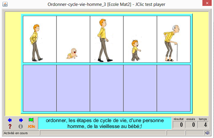 5- Consigne textuel et sonore : « « ordonner les étapes de cycle de vie d'une personne homme! »