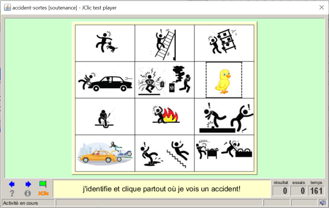 consigne textuel et sonore: Identifier puis cliquer chafois sur l'ensemble de objets