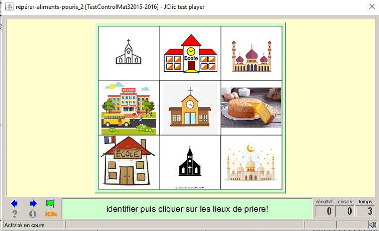 Consigne textuel et sonore : « Identifier puis cliquer sur les images lieux de prière "