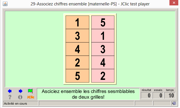 Ex : Jeu de KIM. « Associez ensemble les chiffres semblables de deux grilles! »