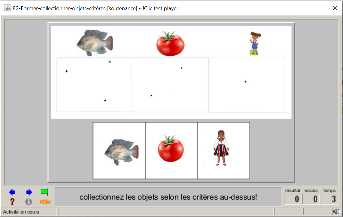 consigne textuel et sonore: « Je collection les objets selon les critères au-dessus »
