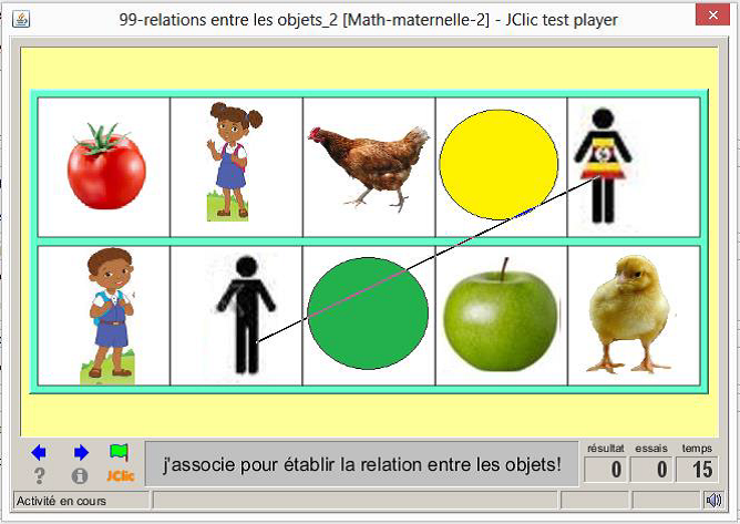 Consigne textuel et sonore: « J’associe pour établir la relation entre les objets »