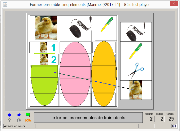 L’instituteur/trice réunira un certain nombre d’objets et procédera à la formation des tas selon la nature de ces objets. Il/ elle s’appuiera sur ces tas pour dégager la notion d’ensemble et d’éléments d’un ensemble.