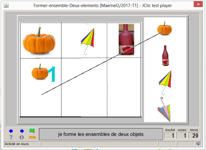- Etablir la relation entre deux ou trois objets--> Perception de la relation (Ex. parmi plusieurs objets dessinés sur une feuille de papier, relier les objets utilisés en classe)