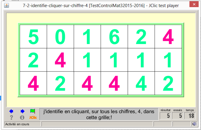 Contenu « j'identifie en cliquant, sur tous les chiffres, 4, dans cette grille;! »