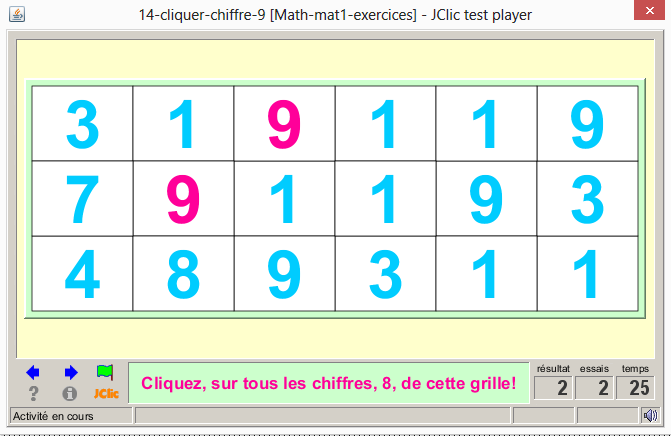 Contenu « j'identifie en cliquant sur tous les chiffres 9 dans cette grille;! »