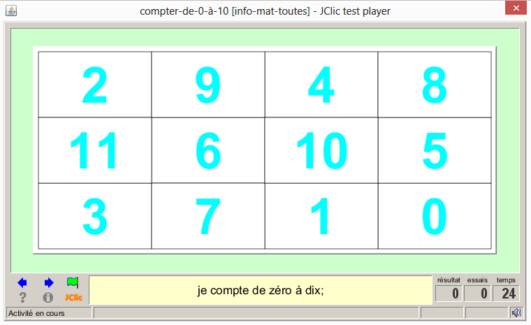 Contenu « j'identifie en cliquant sur tous les chiffres allant de 0 à 10 dans cette grille;! »