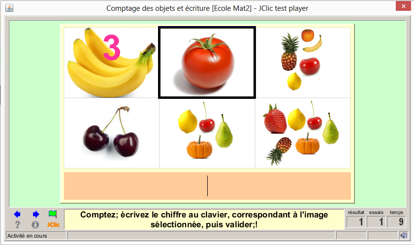 « Comptez; écrivez le chiffre au clavier, correspondant à l'image sélectionnée, puis valider;! »